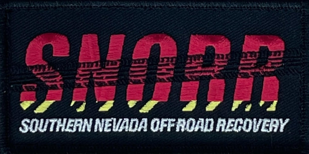 SNORR Logo Patch with hook and loop back for attaching to apparel, shirts, hats, backpacks, etc. Comes with hook and loop back on patch and opposite side hook and loop piece if you would like to sew it on to you own apparel.